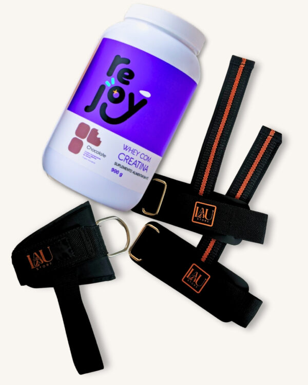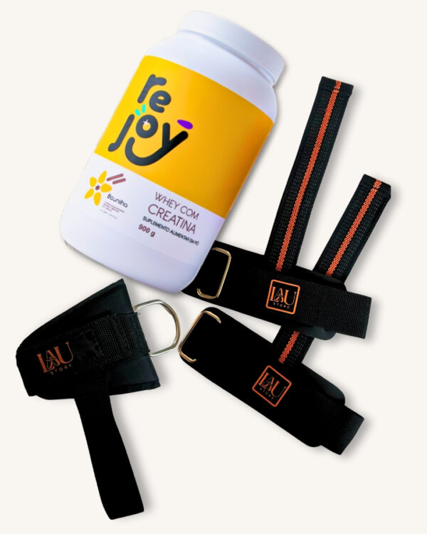 Whey com Creatina + Tornozeleira + Strap (Par)